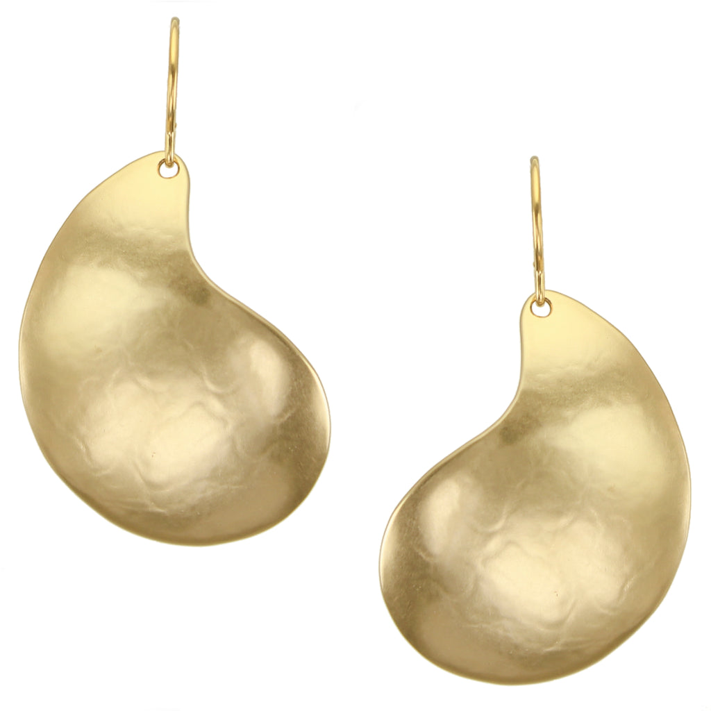 A large domed paisley in either brass or silver. Wire earring.