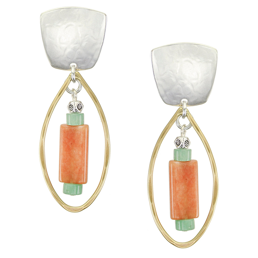 Teardrop with Orange and Aventurine Beads Post or Clip Earrings